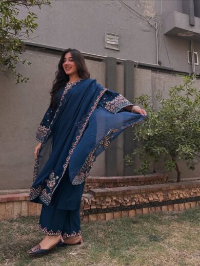 The suit fits perfectly and feels premium. Loved the soft chiffon dupatta!