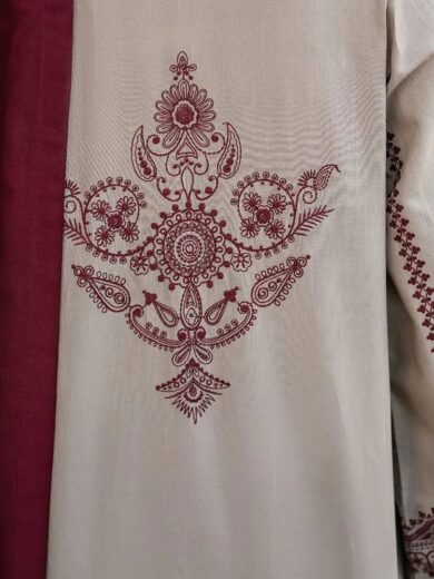 Royal Maroon Lal Pari 3Pc Embroidered Lawn Dress BY Al Asar Art